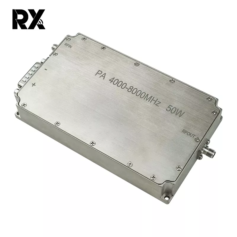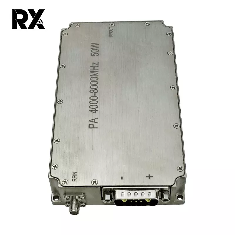 ဤအပိုင်းသည် 4000-8000mHz ၏ကျယ်ပြန့်သောကြိမ်နှုန်း band ကိုဖုံးအုပ်ထားသည့်ဤ module သည် UHF, L နှင့် S တို့ကဲ့သို့သောအသုံးအများဆုံးသောမောင်းသူမဲ့လေယာဉ်ဆက်သွယ်ရေးအဖွဲ့များနှင့်သဟဇာတဖြစ်သည်။ 47DB High Gain 50W Drone Amplifier Module 4000-8000mhz ၏ standard test voltage module နှင့် 3.6A ၏တည်ငြိမ်သော operating voltage ကိုထောက်ပံ့သည်။ ၎င်းသည်စူးစမ်းလေ့လာခြင်း, စစ်ဆေးခြင်း, စစ်ဆေးခြင်း, အပင်ကာကွယ်ရေးနှင့်အရေးပေါ်ဆက်သွယ်ရေးစသည့်မြင့်မားသောစစ်ဆင်ရေးများပြုလုပ်ရန်သင့်တော်သည်။